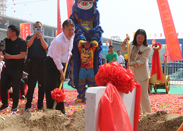 发言结束后,主席台上的主要领导及嘉宾移步到启动杆前,在主持人指令下,缓缓推动了开工仪式启动杆。最后大家一同拿起铁锹为项目奠基碑培上第一铲土,宣告项目动工兴建正式开始,现场顿时掌声雷动,礼炮齐鸣,挖掘机、翻斗车等机械设备鸣笛庆贺,将开工典礼仪式推向高潮。