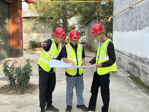 因地下管线复杂,施工中,难免会出现挖断地下管道的情况,如果被挖断的管道不能及时得到修复,会影响村民用水。为最大限度减轻施工对村民生活的影响,项目部做实做细施工前的准备工作,先联系熟悉原敷设管道的村民,摸清摸透地下管道具体位置后再开挖,如遇敷设管线较多的部位,安排技术娴熟的师傅人工挖掘安装管道,同时安排人员准备好抢修的材料管件,一旦挖断管道,立即现场抢修。在同一现场施工的其它单位几乎每天都有因耽误村民用水被投诉的情况,元氏管网项目施工的标段很少发生。“管沟挖得深、回填干得快,而且,很少耽误俺们用水。”监理单位到现场检查时听到老百姓对元氏管网项目部如此评价。甲方也经常在微信工作群夸赞该项目部施工的标段是“放心工地”。